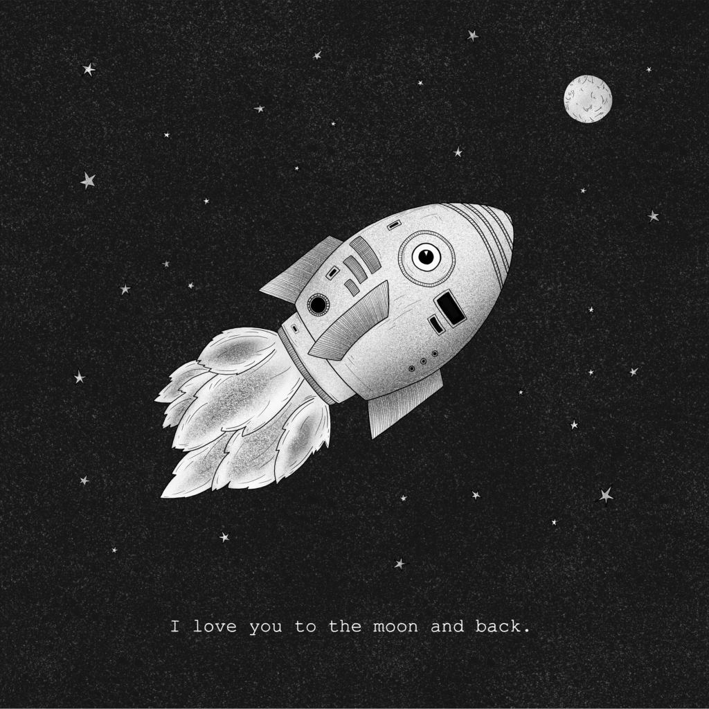 – een cadeauboek met illustraties, comics en plaats voor lieve boodschappen rond het thema ruimte en liefde –